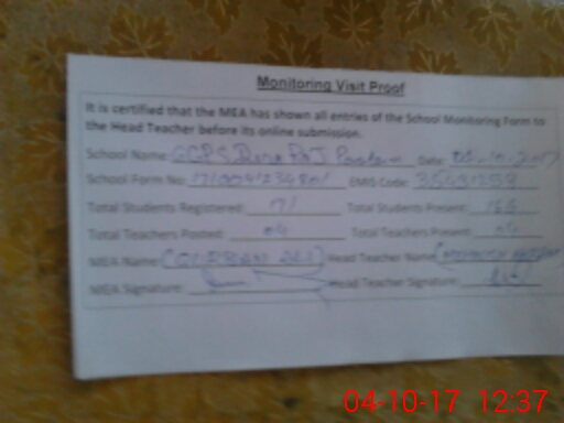 | Certified that this School was Inspected by the Undersigned MEA/DMO Today and the Information Stated Above is as Per Record. | |||||