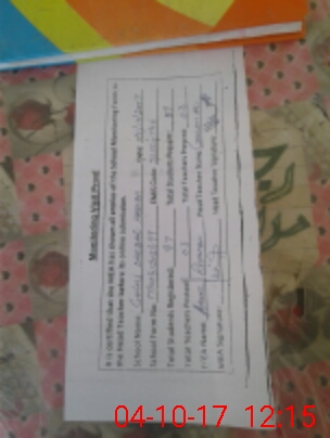 | School Visited by School Health & Nutrition Supervisor (No. of Visits) | 1 | Name1: | GHULAM MUSTAFA | Name2: | Nil |