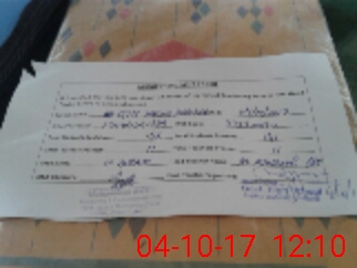 | Monitoring Date: 04-10-2017 | Start Time: 04-10-2017 11:41 AM | End Time: 04-10-2017 12:25 PM | Name of MEA: ZM**** Ak**** | |