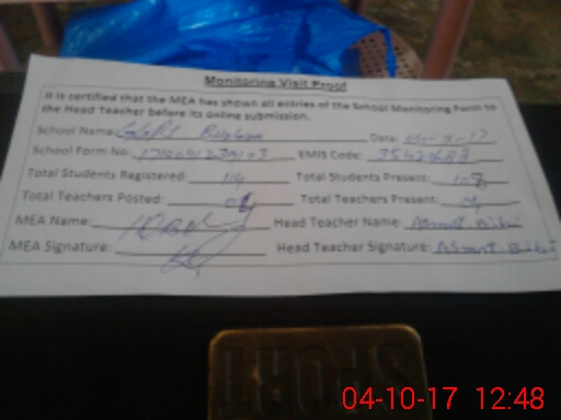| Attendance Register | Head Teacher | MEA with School | Visit Proof |