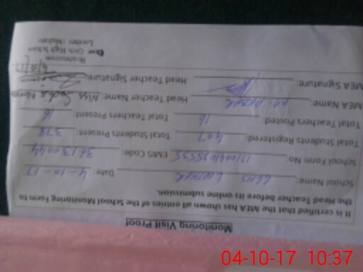 | Attendance Register | Head Teacher | MEA with School | Visit Proof |