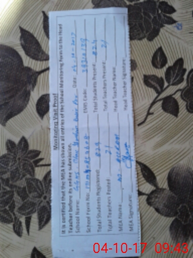 | Attendance Register | Head Teacher | MEA with School | Visit Proof |