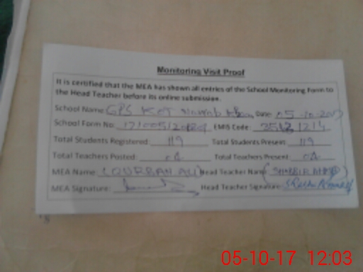 | EMIS Code: 35431214 | Name of School: GPS KOT NAWAB KHAN | |||