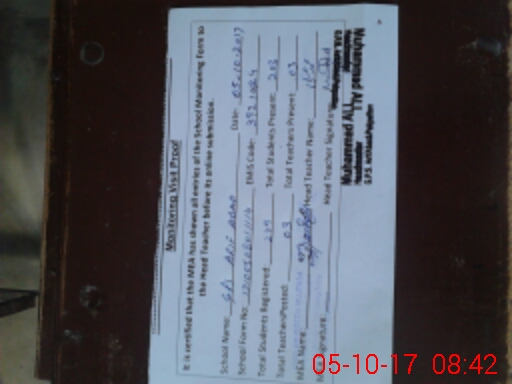 | Attendance Register | Head Teacher | MEA with School | Visit Proof |