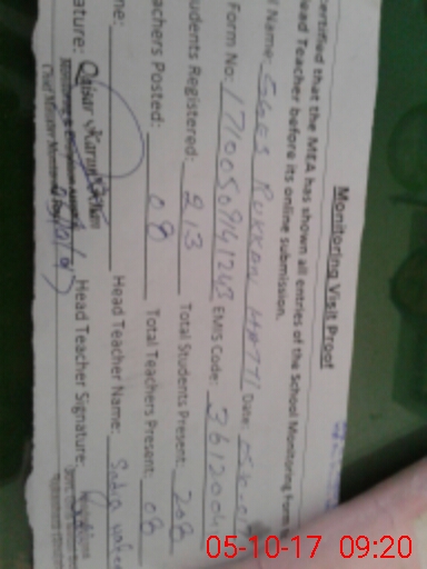 | Certified that this School was Inspected by the Undersigned MEA/DMO Today and the Information Stated Above is as Per Record. | |||||