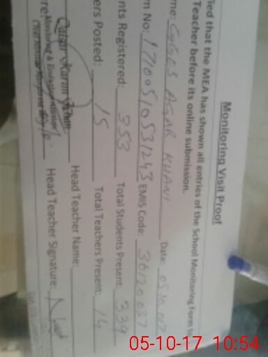 | Certified that this School was Inspected by the Undersigned MEA/DMO Today and the Information Stated Above is as Per Record. | |||||