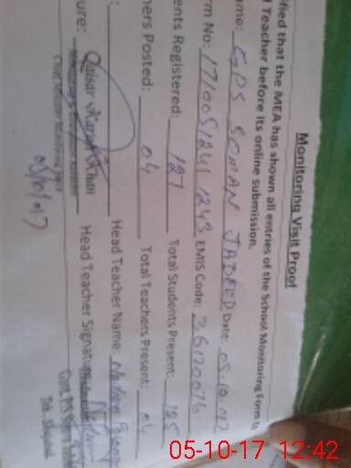 | EMIS Code: 36120076 | Name of School: GPS SOMAN JADEED P/O AGAR KHANI MOZA SOMAN | |||
