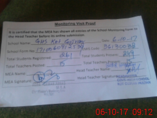 | EMIS Code: 36130038 | Name of School: GHS KOT GUJRAN MULTAN | |||