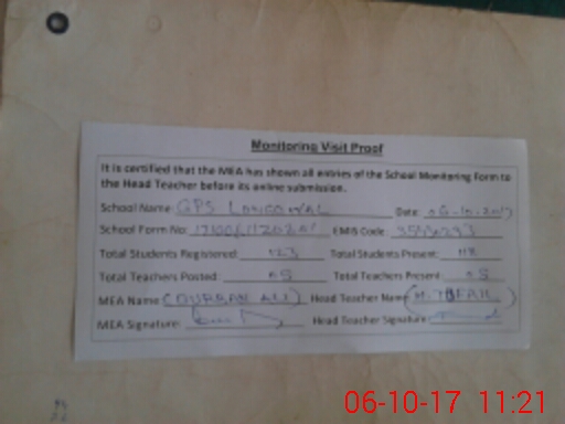 | Certified that this School was Inspected by the Undersigned MEA/DMO Today and the Information Stated Above is as Per Record. | |||||