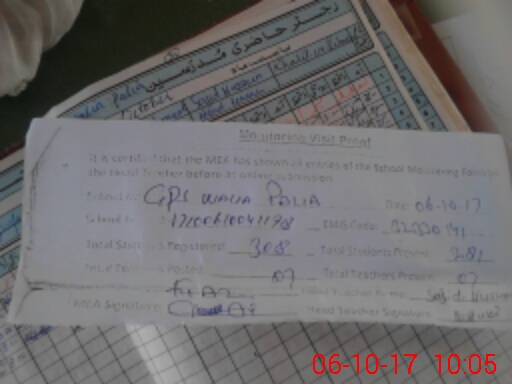 | EMIS Code: 32330141 | Name of School: GPS WALIA PALIA | |||