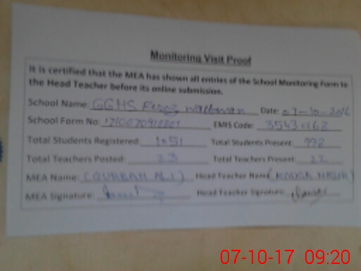 | Attendance Register | Head Teacher | MEA with School | Visit Proof |