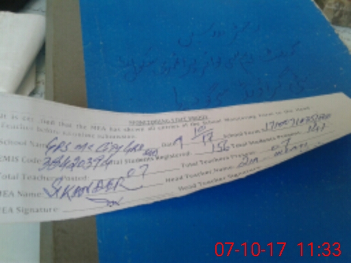 | Name: ZI**** UL**** Designation: (School Headmaster's/Headmistress's) PST Phone/Cell Number: 03**** |