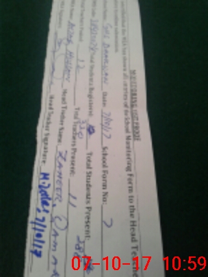 | Attendance Register | Head Teacher | MEA with School | Visit Proof |