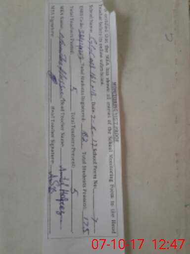 | Attendance Register | Head Teacher | MEA with School | Visit Proof |