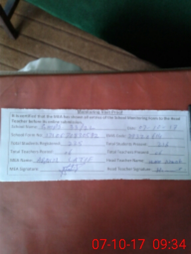 | Certified that this School was Inspected by the Undersigned MEA/DMO Today and the Information Stated Above is as Per Record. | |||||