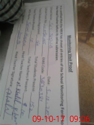 | Monitoring Date: 09-10-2017 | Start Time: 09-10-2017 08:20 AM | End Time: 09-10-2017 09:08 AM | Name of MEA: JA**** HU**** | |