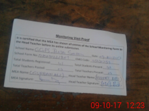 | Attendance Register | Head Teacher | MEA with School | Visit Proof |