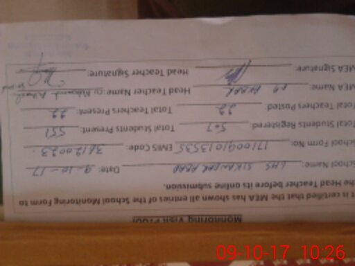 | Certified that this School was Inspected by the Undersigned MEA/DMO Today and the Information Stated Above is as Per Record. | |||||