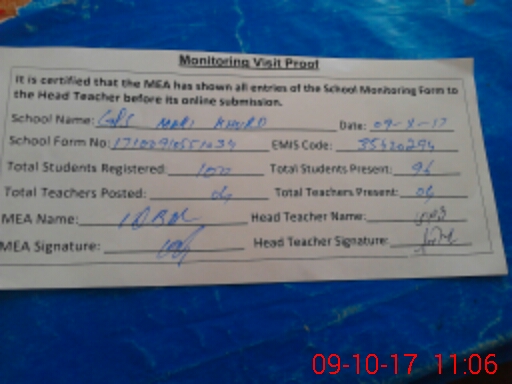 | Certified that this School was Inspected by the Undersigned MEA/DMO Today and the Information Stated Above is as Per Record. | |||||