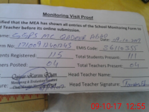 | EMIS Code: 36110355 | Name of School: GGPS MC QADEER ABAD MULTAN | |||