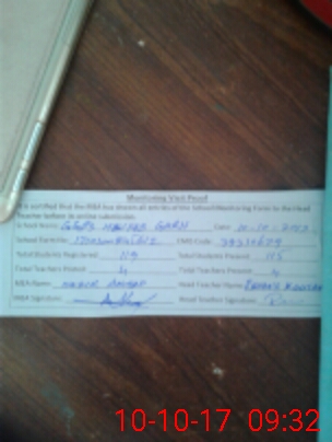 | Attendance Register | Head Teacher | MEA with School | Visit Proof |