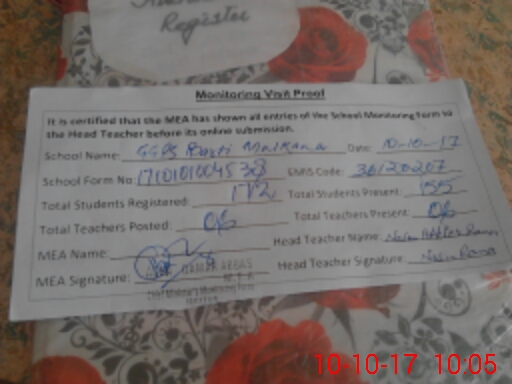 | Certified that this School was Inspected by the Undersigned MEA/DMO Today and the Information Stated Above is as Per Record. | |||||