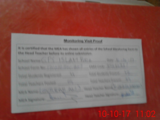 | EMIS Code: 35430321 | Name of School: GPS ISLAM PURA | |||
