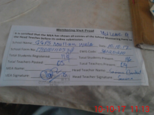 | EMIS Code: 36120210 | Name of School: GGPS MULLAN WALA SHUJABAD | |||