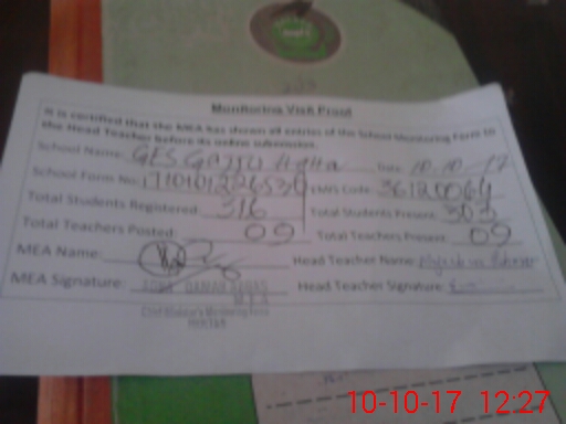 | Attendance Register | Head Teacher | MEA with School | Visit Proof |