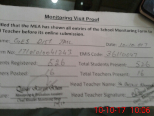 | EMIS Code: 36110047 | Name of School: GHS DISTRICT JAIL MULTAN | |||