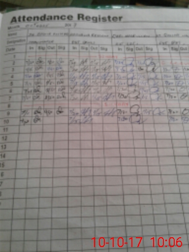 | CNIC | Full Name | Designation | R/C | Absence During Last Calender Month |