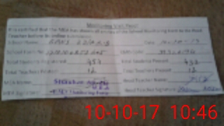 | Monitoring Date: 10-10-2017 | Start Time: 10-10-2017 08:50 AM | End Time: 10-10-2017 10:47 AM | Name of MEA: SH**** AL**** ZI**** (R**** | |