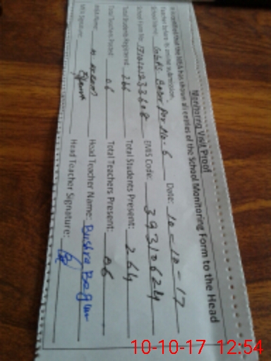 | Attendance Register | Head Teacher | MEA with School | Visit Proof |