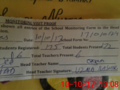 | Attendance Register | Head Teacher | MEA with School | Visit Proof |