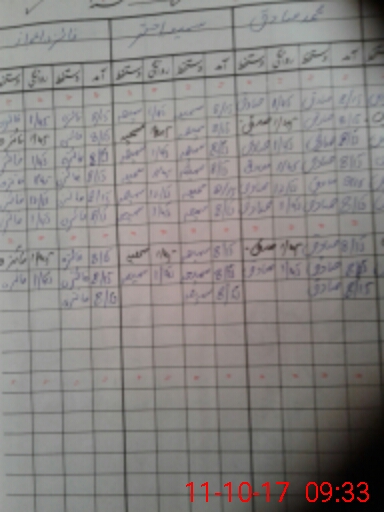 | CNIC | Full Name | Designation | R/C | Absence During Last Calender Month |
