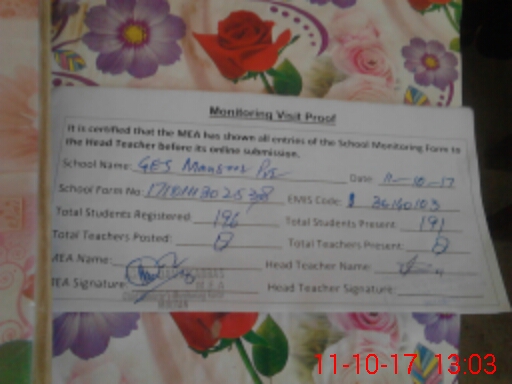 | Attendance Register | Head Teacher | MEA with School | Visit Proof |