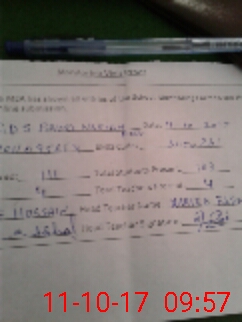 | Monitoring Date: 11-10-2017 | Start Time: 11-10-2017 09:26 AM | End Time: 11-10-2017 09:58 AM | Name of MEA: Al**** Hu**** BN**** | |