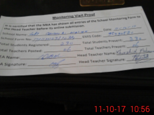 | Attendance Register | Head Teacher | MEA with School | Visit Proof |