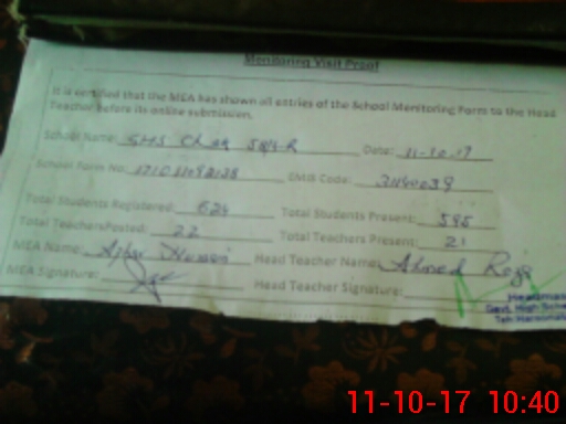 | Certified that this School was Inspected by the Undersigned MEA/DMO Today and the Information Stated Above is as Per Record. | |||||