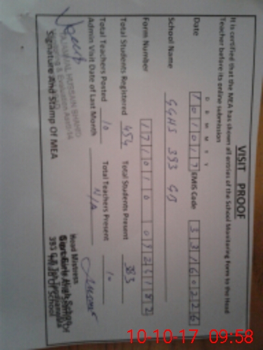 | Certified that this School was Inspected by the Undersigned MEA/DMO Today and the Information Stated Above is as Per Record. | |||||