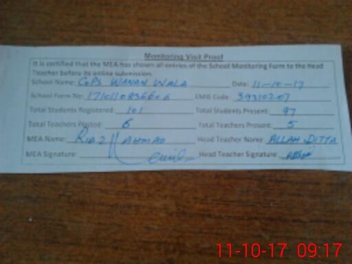 | EMIS Code: 39310207 | Name of School: GPS WANAN WALA | |||