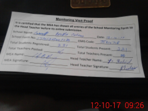 | EMIS Code: 35410708 | Name of School: GPS PEOPLES COLONY | |||