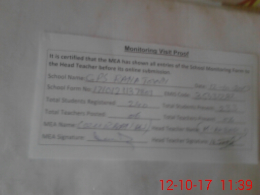 | Certified that this School was Inspected by the Undersigned MEA/DMO Today and the Information Stated Above is as Per Record. | |||||