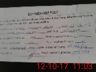 | Attendance Register | Head Teacher | MEA with School | Visit Proof |