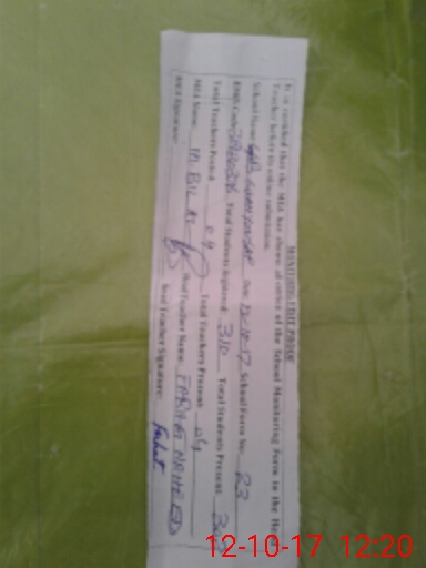 | Attendance Register | Head Teacher | MEA with School | Visit Proof |