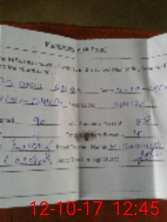 | Monitoring Date: 12-10-2017 | Start Time: 12-10-2017 12:23 PM | End Time: 12-10-2017 12:46 PM | Name of MEA: Al**** Hu**** BN**** | |