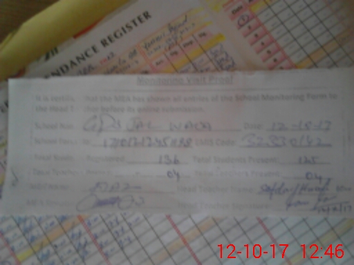 | Attendance Register | Head Teacher | MEA with School | Visit Proof |