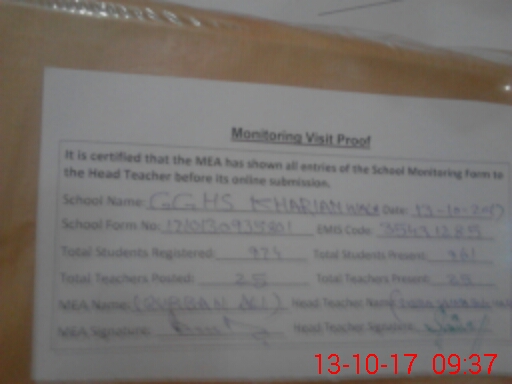 | EMIS Code: 35431285 | Name of School: GGHS KHARIAN WALA | |||