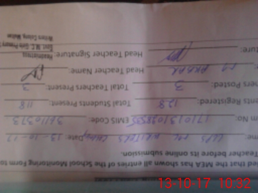 | Certified that this School was Inspected by the Undersigned MEA/DMO Today and the Information Stated Above is as Per Record. | |||||