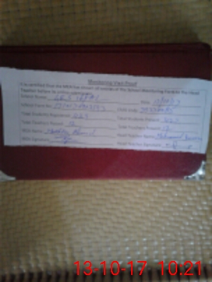 | Attendance Register | Head Teacher | MEA with School | Visit Proof |